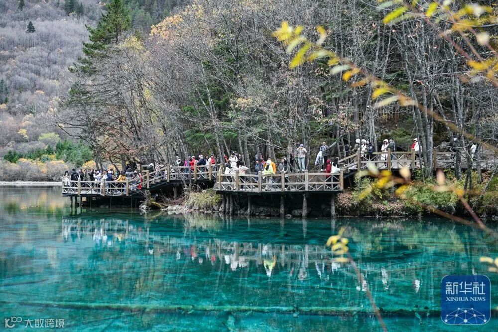 11月16日,游客在九寨沟景区五花海观光。新华社记者 王曦 摄