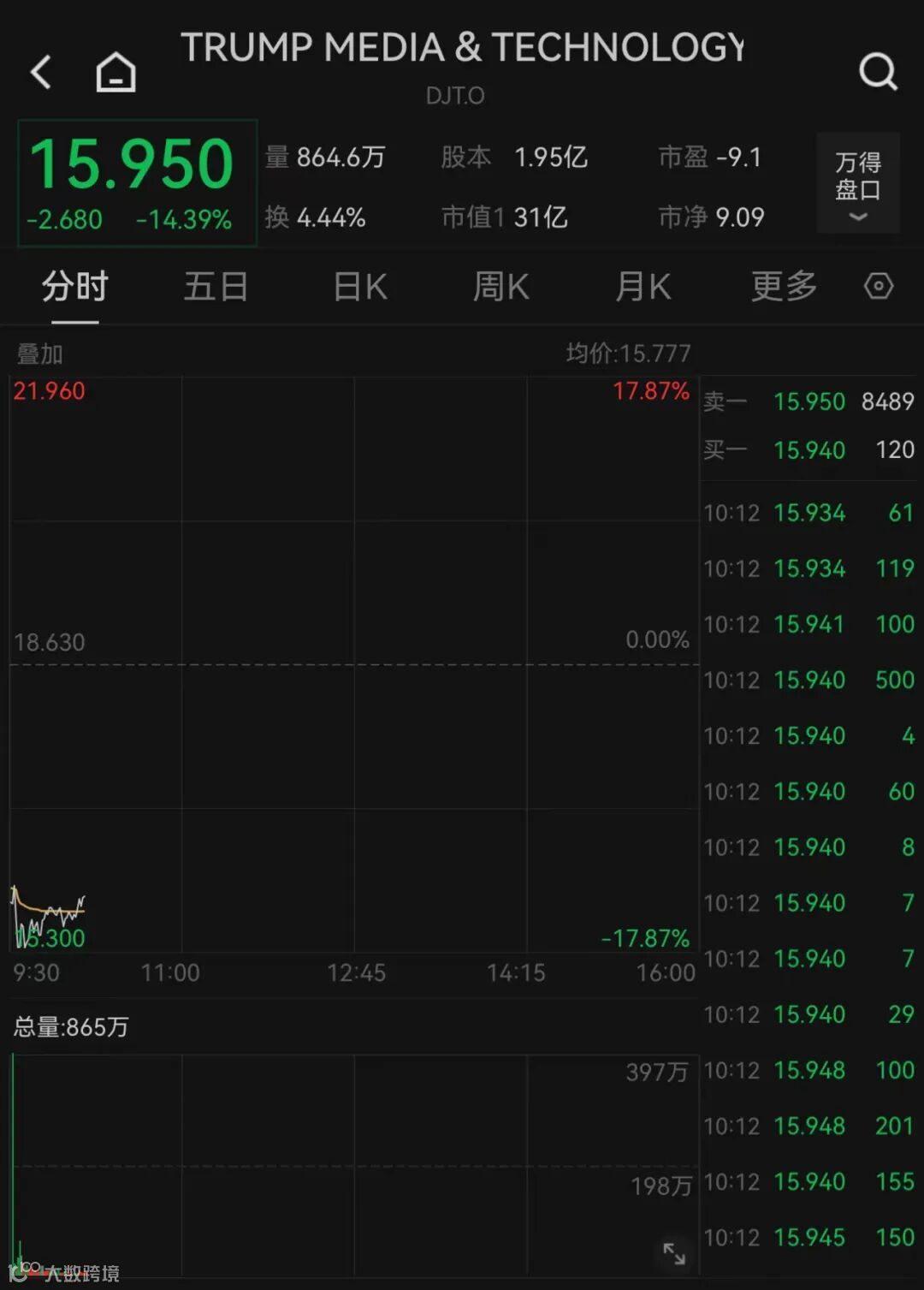 特朗普媒体科技集团盘中一度跌逾17%,创6月份以来最大跌幅。