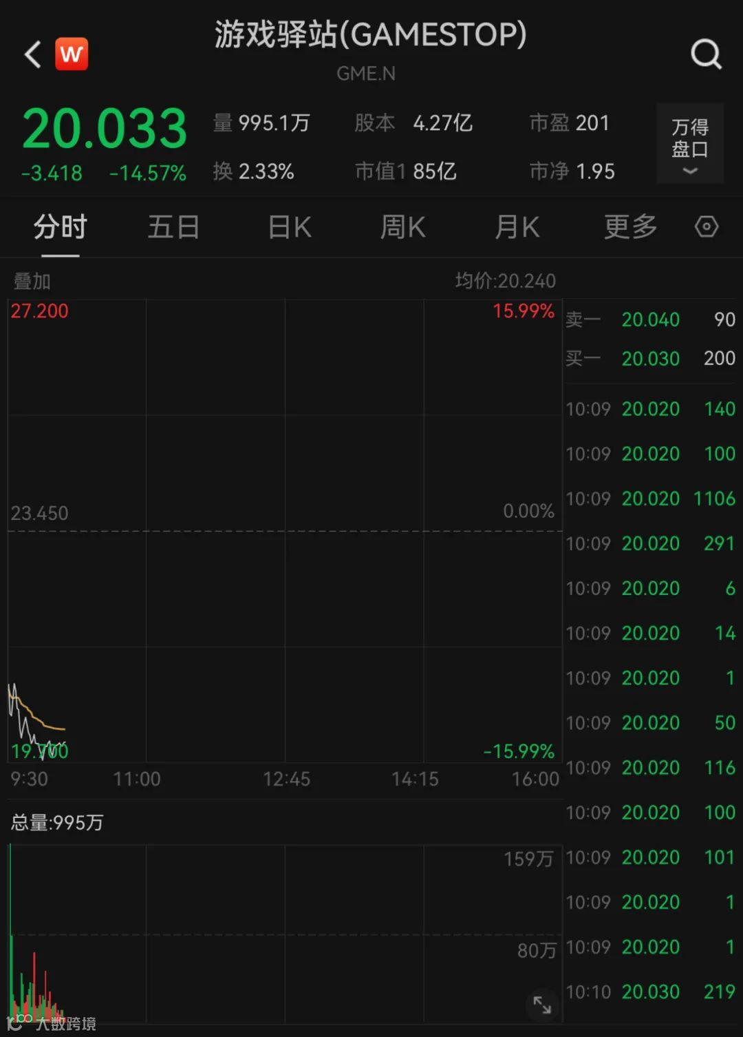 美股开盘大跌