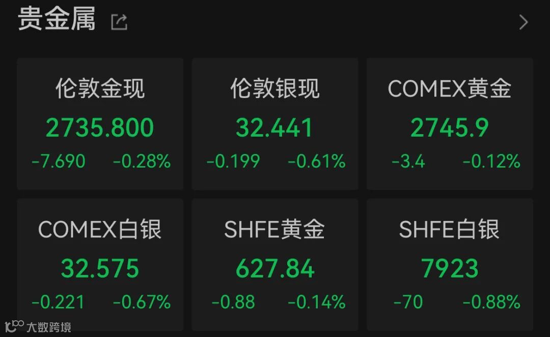 大宗商品方面,Wind数据显示,现货黄金跌0.28%,报2735.80美元/盎司。美股盘前、美国非农就业