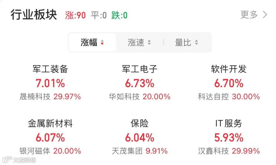 今日90个行业板块全部上涨