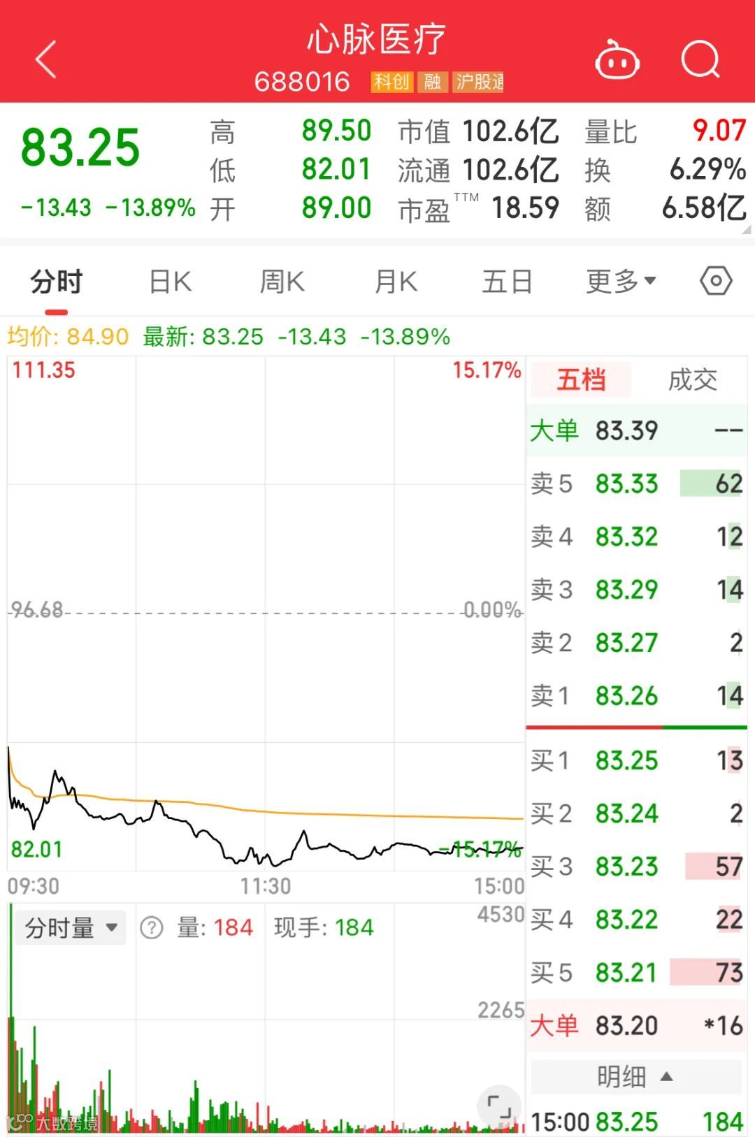 受利空消息影响,心脉医疗今天大跌,盘中一度跌近15%。截至收盘,心脉医疗跌近14%。