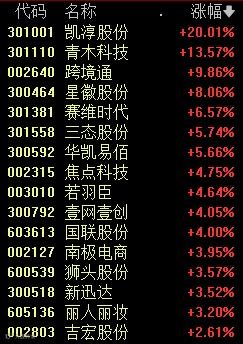 今天上午,互联网电商板块爆发,凯淳股份、青木科技、跨境通等个股大涨。