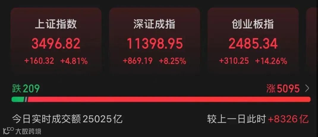 今天上午,A股成交额为25025亿元,创下半日最高成交额历史纪录。同时也逼近9月30日刚创下的全天2.59万亿元的历史纪录。