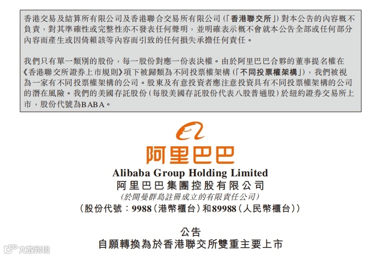 8月23日早间,阿里巴巴在港交所发布公告称,自愿转换为于香港联交所双重主要上市。