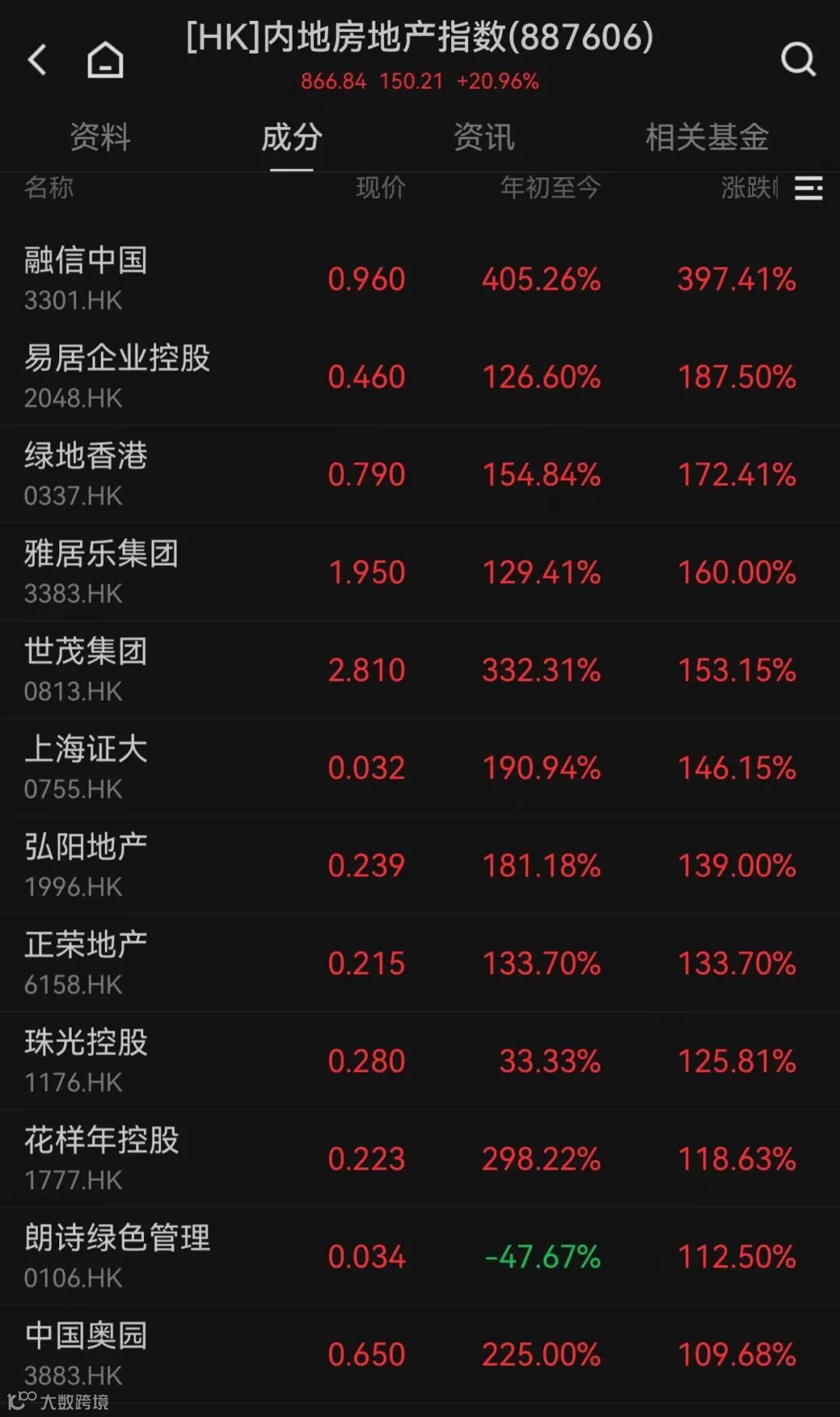 证大等日内走出翻倍行情,弘阳地产、珠光控股等个股也迎来大涨。