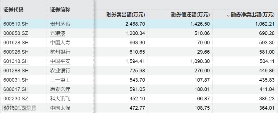 8日融券净卖出额居前的股票为贵州茅台、五粮液、中国人寿,分别为1062.21万元、690.28万元、593.30万元。
