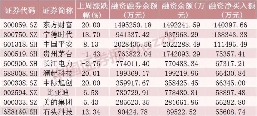 从个股情况来看,8日融资客对209只股票加仓超1亿元,融资客加仓居前的10只股票分别为东方财富、宁德时代、中国平安、贵州茅台、长江电力、澜起科技、中际旭创、比亚迪、美的集团、石头科技,分别净买入14.04亿元、13.83亿元、11.15亿元、7.54亿元、6.73亿元、6.64亿元、6.63亿元、5.89亿元、5.63亿元、5.56亿元。从市场表现上看,8日融资客加仓居前十的股票多数大涨,东方财富、澜起科技、中际旭创均“20CM”涨停。