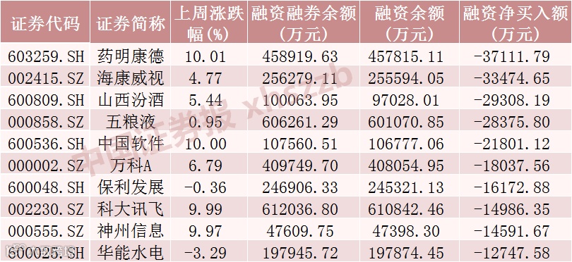 8日融资净卖出金额前十股
