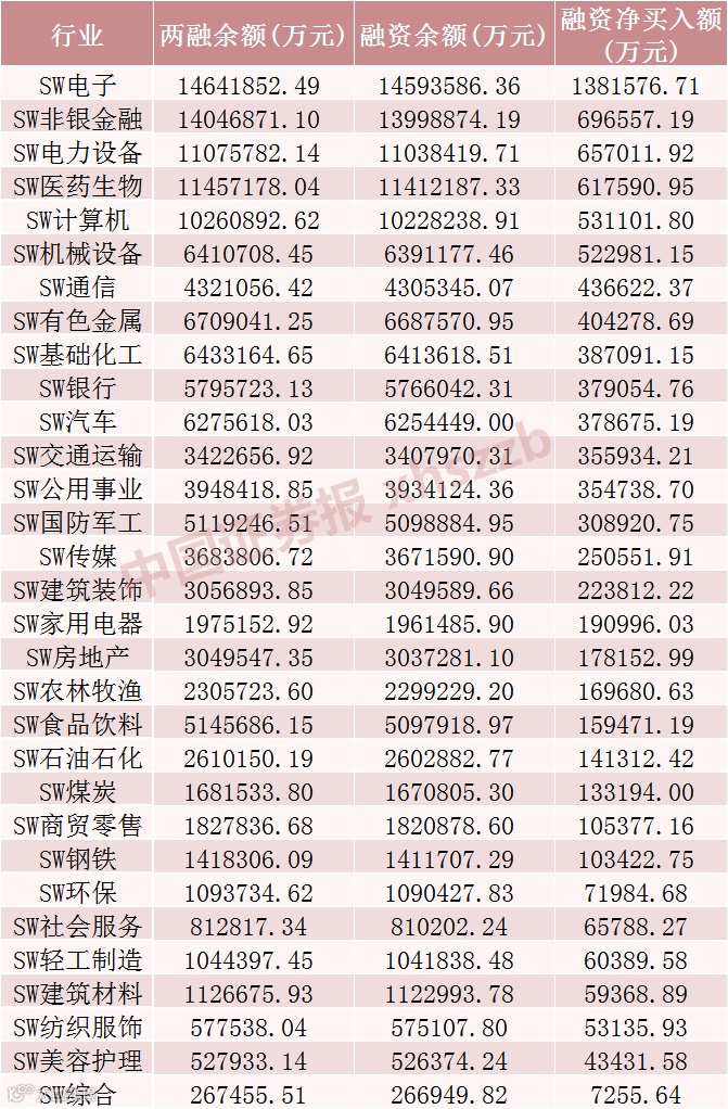 融资客加仓电子行业超130亿元