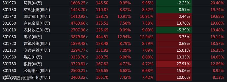 整个9月,上证指数、深证成指、创业板指分别上涨17.39%、26.13%、37.62%,行业板块全线大涨,涨幅最大的行业是非银金融行业,上涨36.63%,房地产、计算机、美容护理行业均涨逾30%。