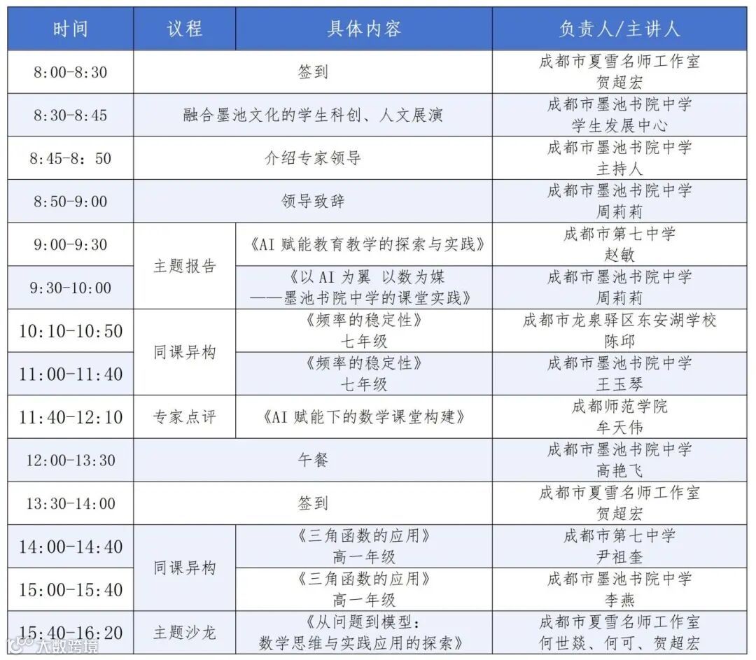 以人工智能为核心驱动力的智能时代,教育转型与课堂重构尤为迫切。传统的教学模式面临深刻挑战,同时也迎来了借助技术突破时空限制、实现个性化与智慧化发展的历史性机遇。数学,作为刻画自然规律、构建逻辑体系的基础学科,其教育质量直接关系到学生科学素养与创新思维的培养。因此,探索人工智能与数学课堂教学的深度融合,不仅是响应国家教育数字化战略的行动,更是直面未来人才培养需求、推动基础教育课堂范式革命的关键探索。本次活动正是在这样的时代召唤与学科发展内在要求下应运而生,旨在汇聚区域智慧,共研AI赋能下数学教育从“知识传授”向“素养生成”转型的可行路径。