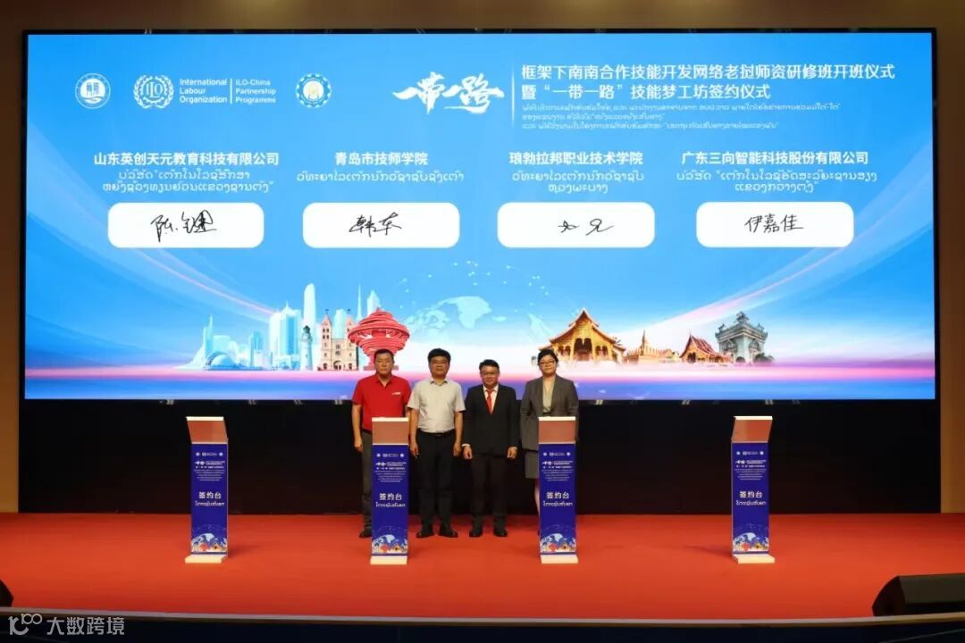 2025年6月5日,我司作为核心合作企业参与"一带一路"框架下南南合作技能开发网络老挝师资研修班开班仪式暨"一带一路"技能梦工坊签约仪式。此次活动在青岛市技师学院隆重举行,人力资源和社会保障部国际合作司、国际劳工组织亚太局、省人力资源社会保障厅、青岛市人力资源社会保障局及院校代表共同见证了这一国际职教合作盛事。
