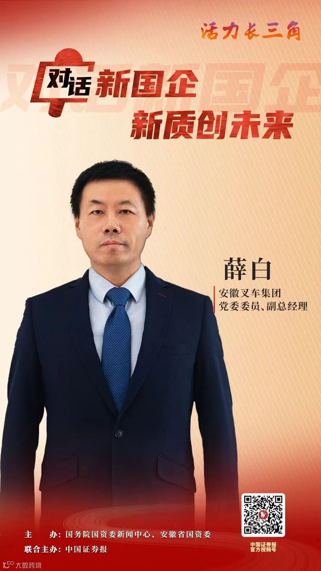 今天,中国证券报为大家带来“对话新国企·新质创未来”系列融媒体访谈第五期,对话安徽叉车集团党委委员、副总经理薛白。