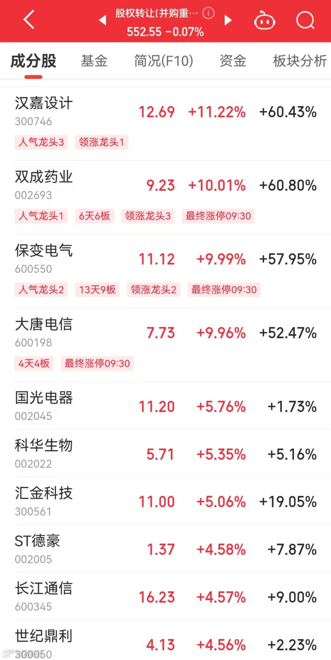 今天,并购重组(股权转让)概念股保持活跃,