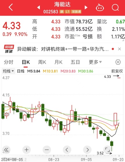 海能达今天开盘一字涨停。