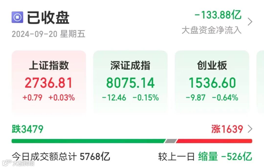 截至收盘,沪指涨0.03%,深成指跌0.15%,创业板指跌0.64%。