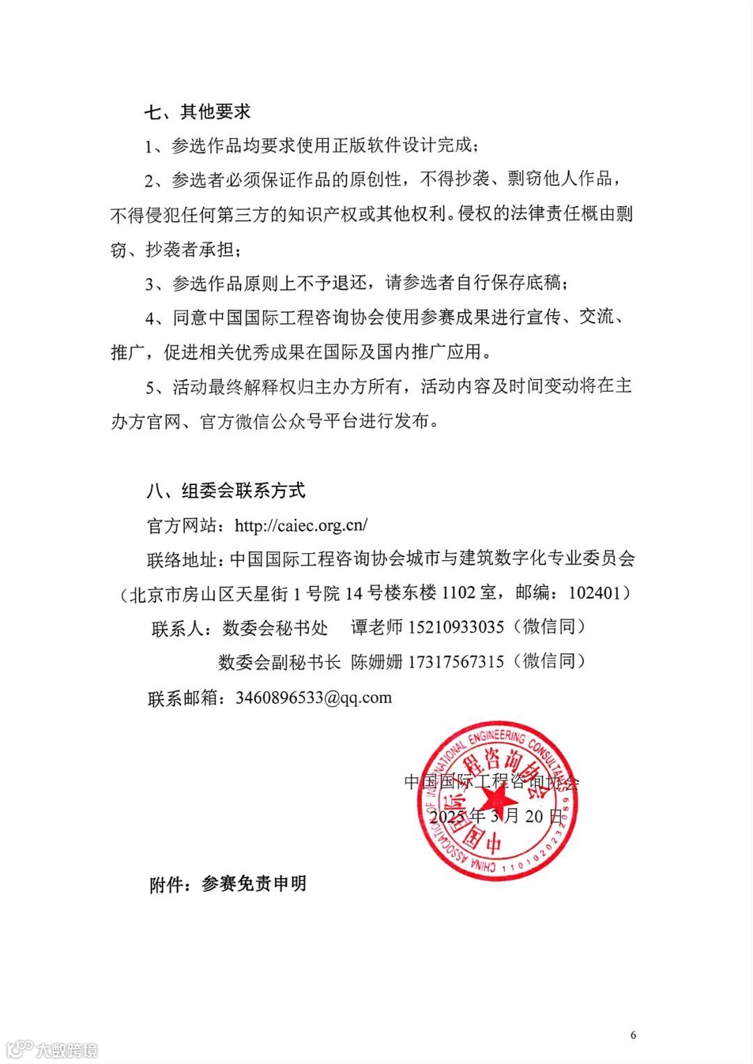 联络地址:中国国际工程咨询协会城市与建筑数字化专业委员会(北京市房山区天星街1号院14号楼东楼1102室,邮编:102401)