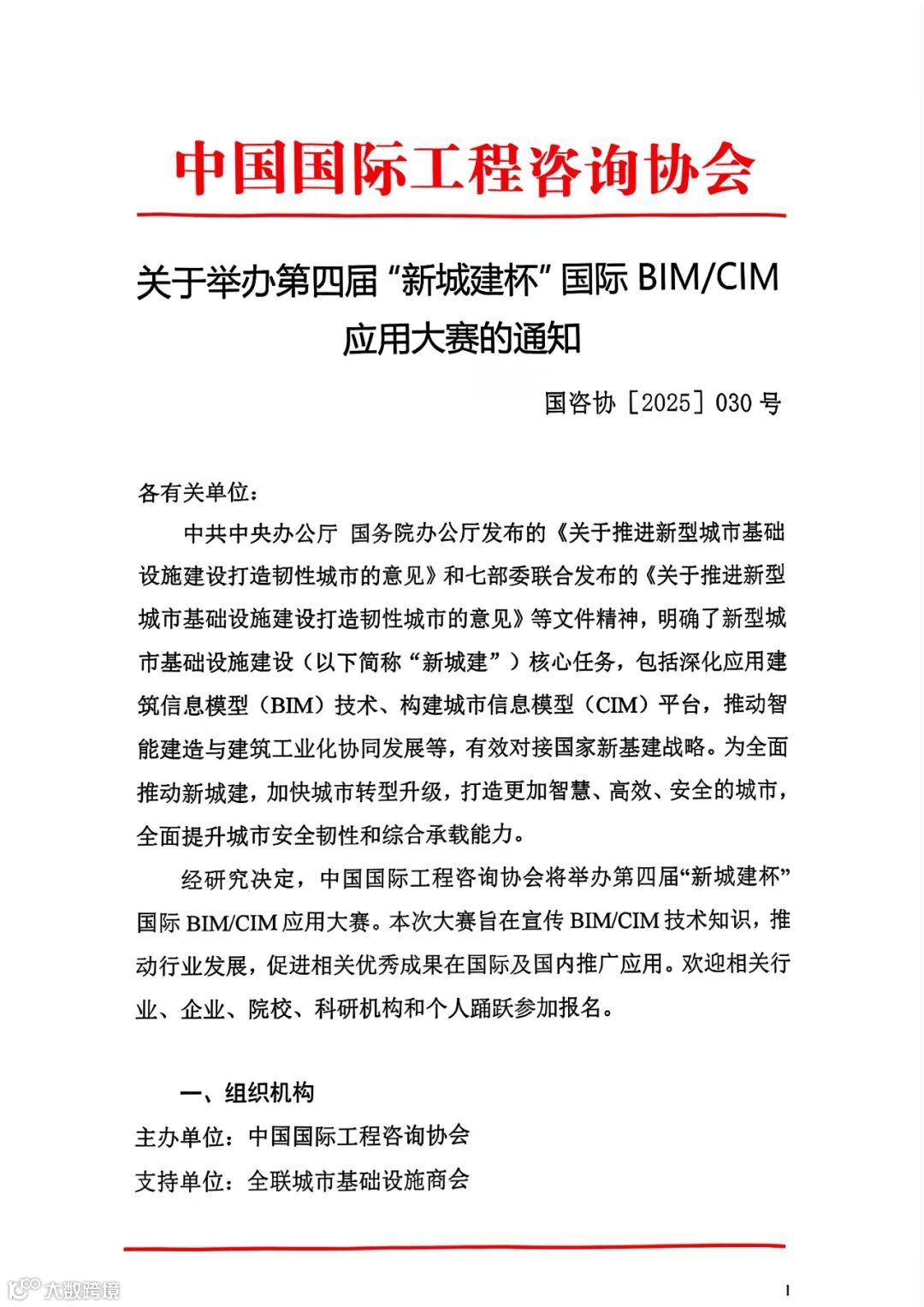 关于举办第四届“新城建杯”国际BIM/CIM应用大赛的通知