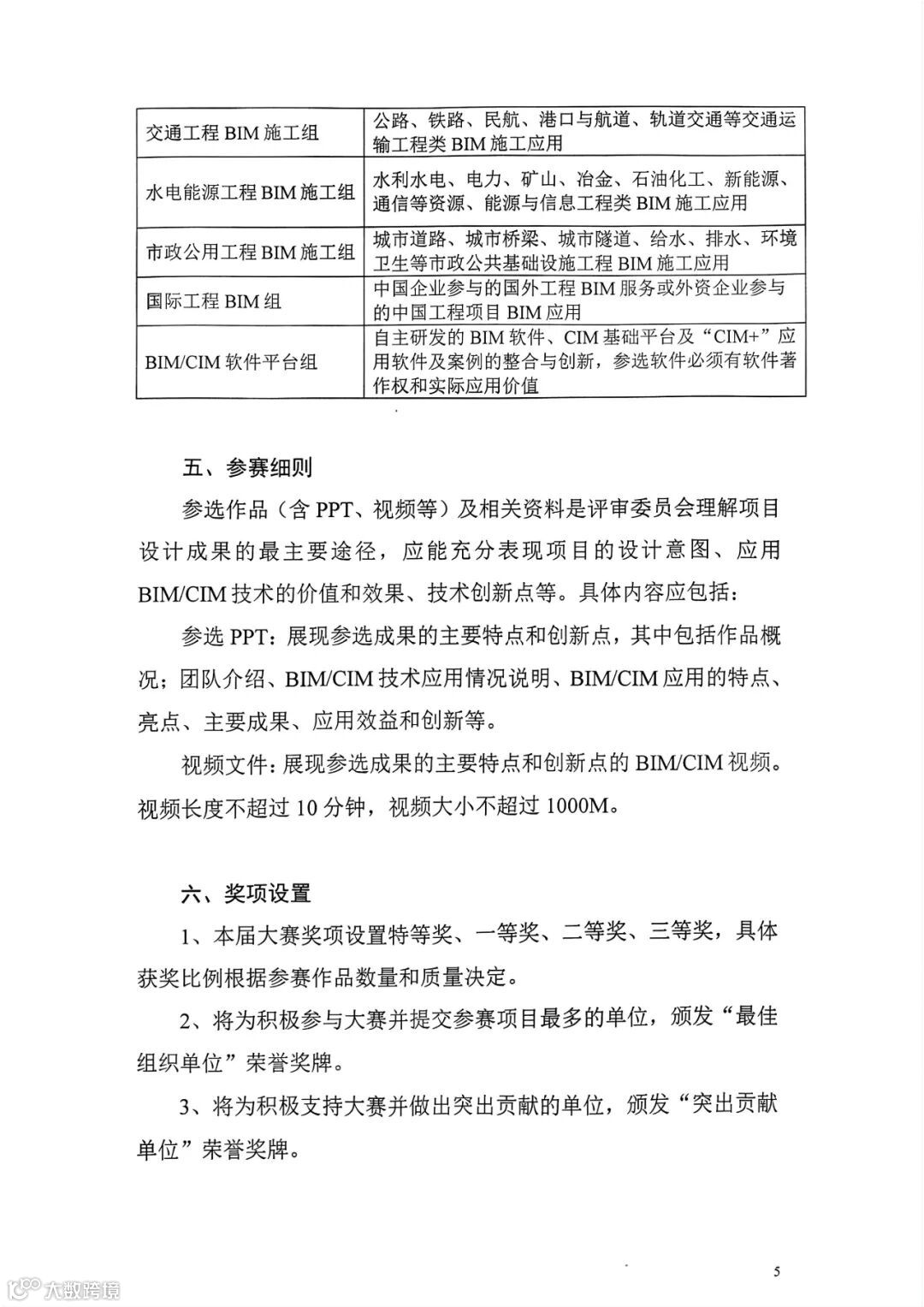 3、参赛成果按照成果类别区分为:BIM设计应用组、建筑工程BIM施工组、交通工程BIM施工组、水电能源工程BIM施工组、市政公用工程BIM施工组、国际工程BIM应用组、BIM/CIM软件平台组。