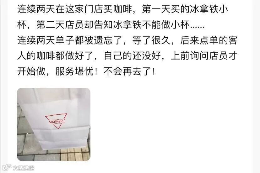 2015年成立的MANNER,在经历了2018年至2021年资本的加持后加速扩张,目前全国门店数已超1200家。然而,规模扩张的同时,不止顾客表达了对门店出品效率的诟病,不少MANNER员工也在社交媒体上“吐槽”。