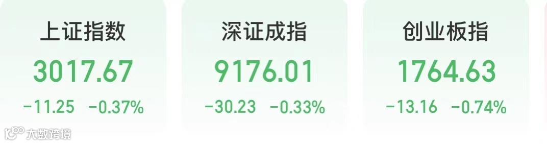截至午间收盘,上证指数下跌0.37%,深证成指下跌0.33%,创业板指下跌0.74%。