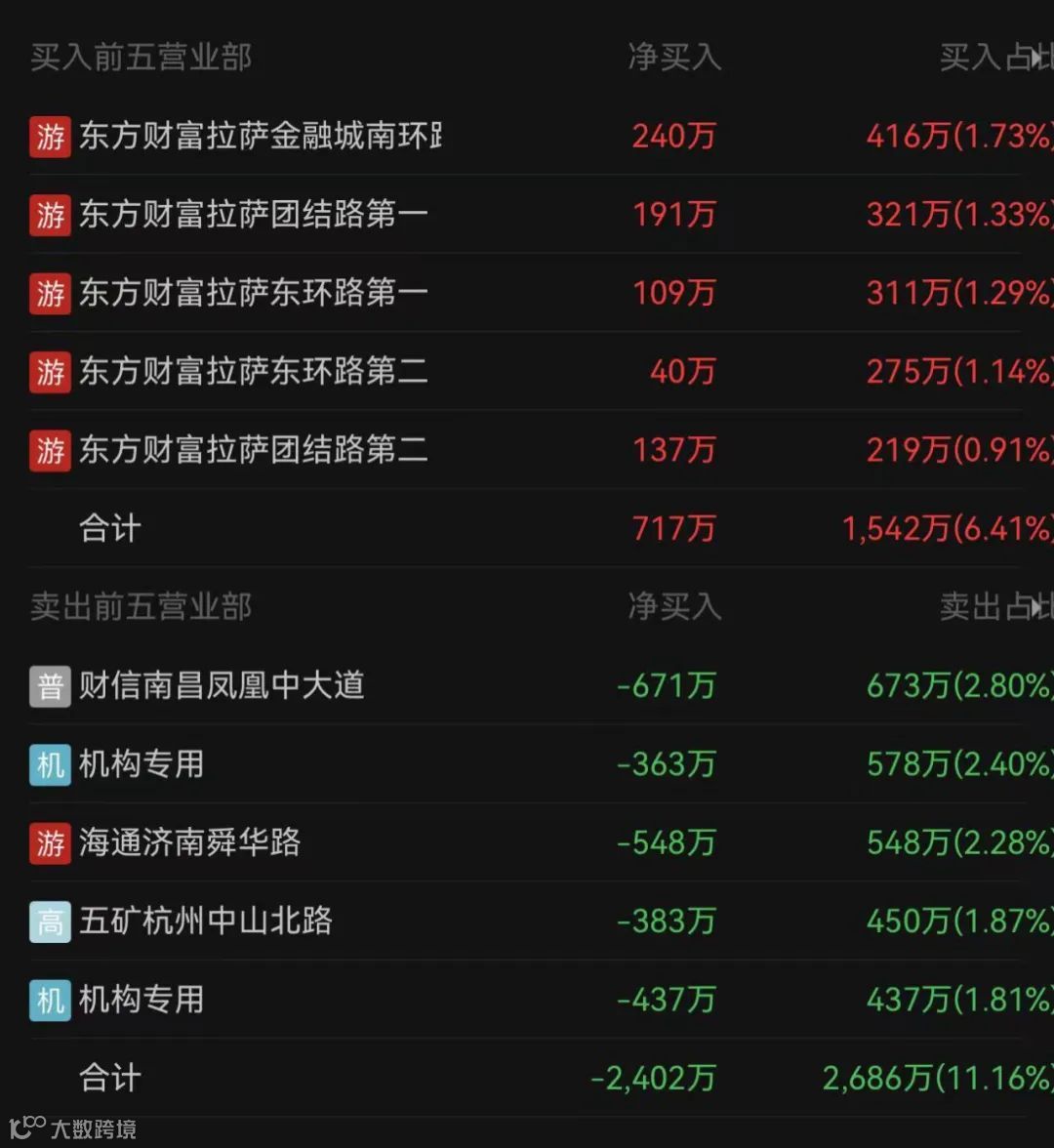 天团”抱团买入。而卖五席位中,有两个席位是机构专用席位。