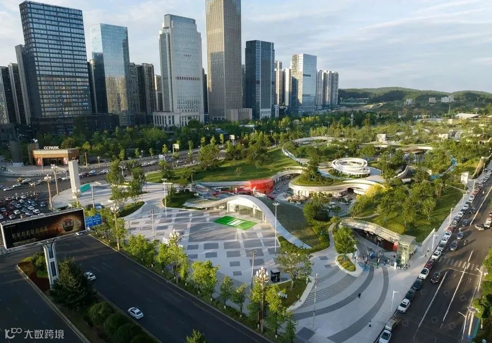 项目位于山城贵阳市观山湖区CBD中心区,占地面积约8.8万㎡的城市绿地,场地内有大尺度的坡度,底下有地铁经过。当地政府希望借助轨道交通的驱动,在绿地空间下植入商业,赋予土地更多可能性。而如何回应场地现状,及平衡公共绿地与商业空间的属性是项目的重点。