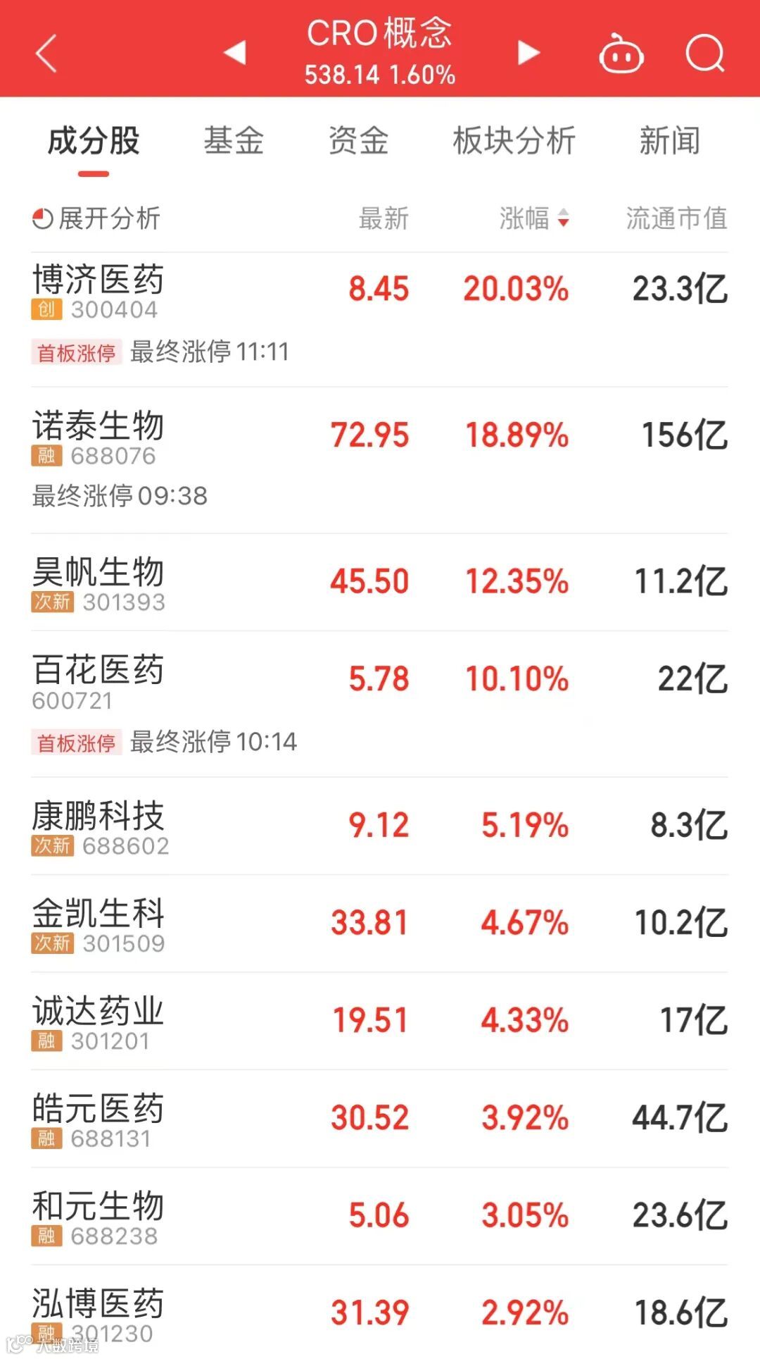 今天上午,医药股表现活跃,CRO、减肥药、医疗服务等板块涨势显著。