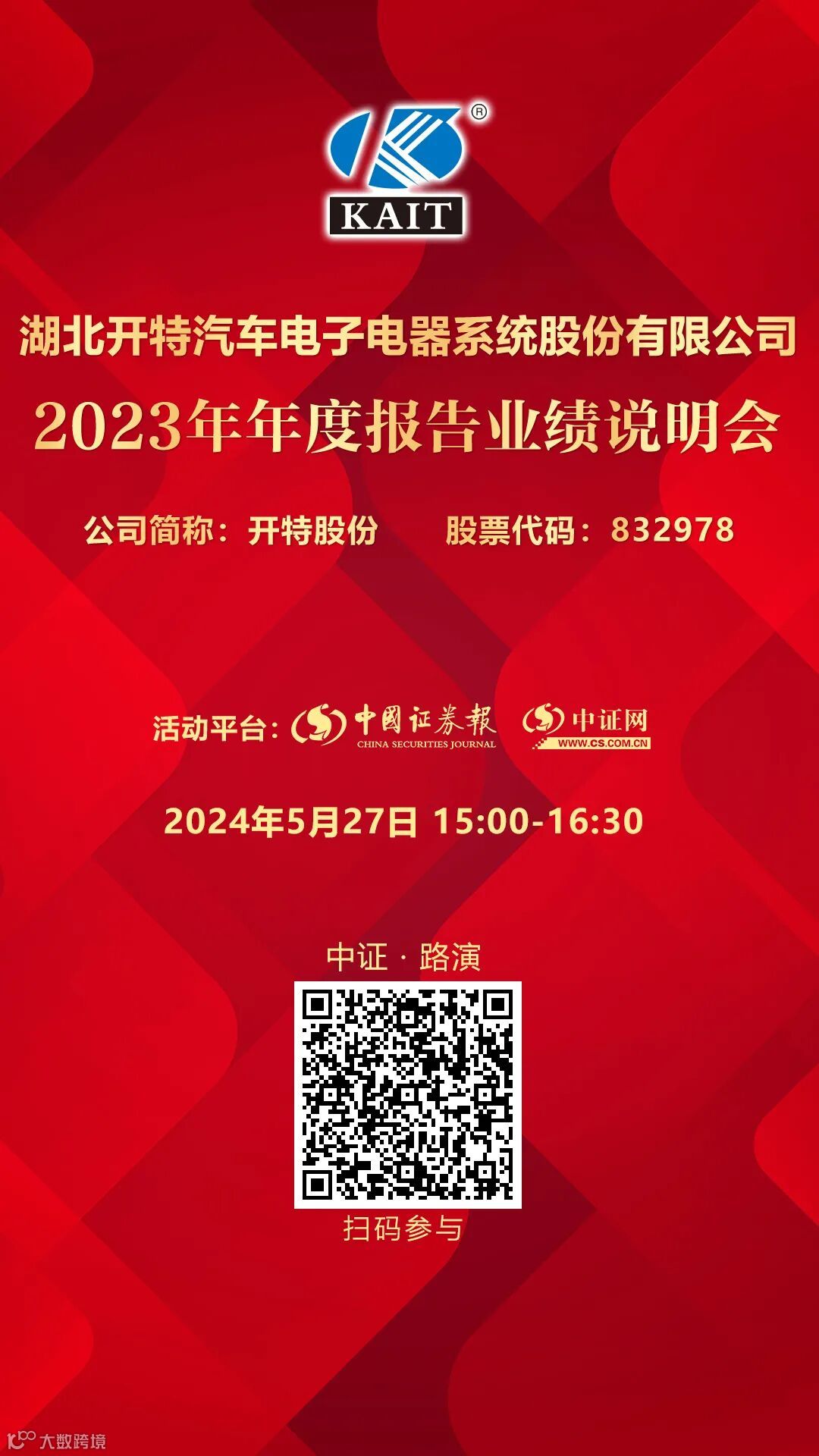开特股份2023年年度报告业绩说明会5月27日在中证网举行