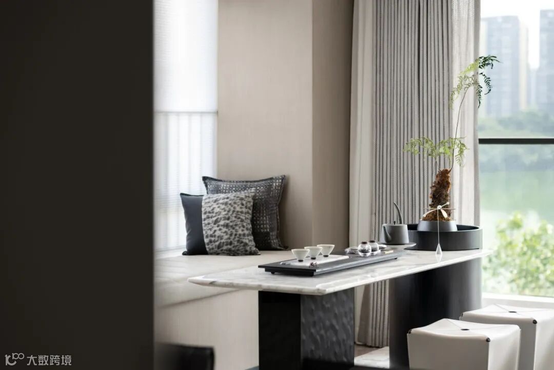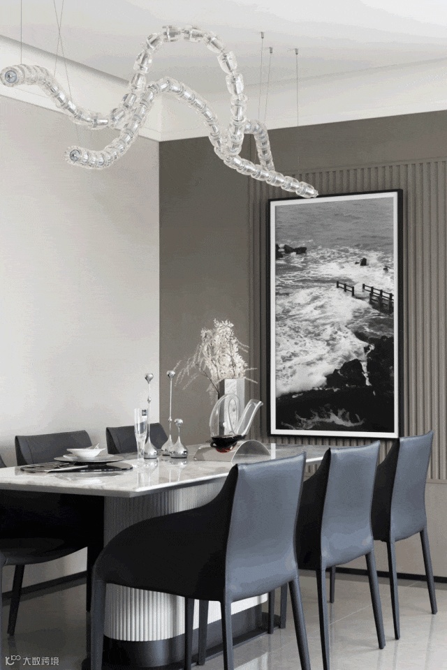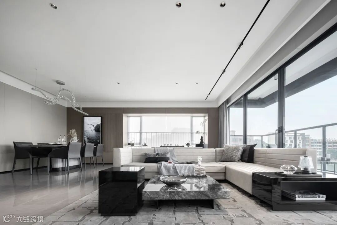The space is based on the neutral temperament of black, white and gray, supplemented by reflective natural stone and metal texture materials, delivering the linearity and toughness, which makes the entire home space a strong modern aesthetic and elite temperament and echoes the needs of the modern urban dwellers.
