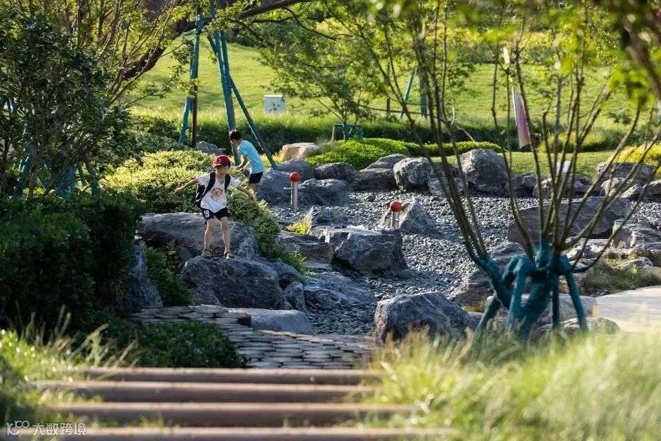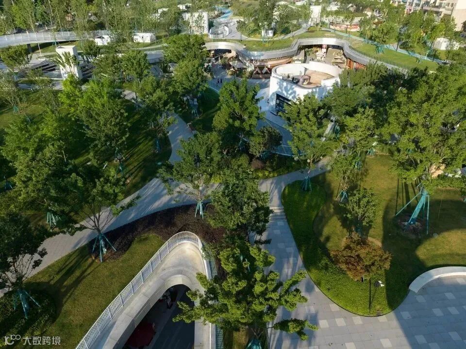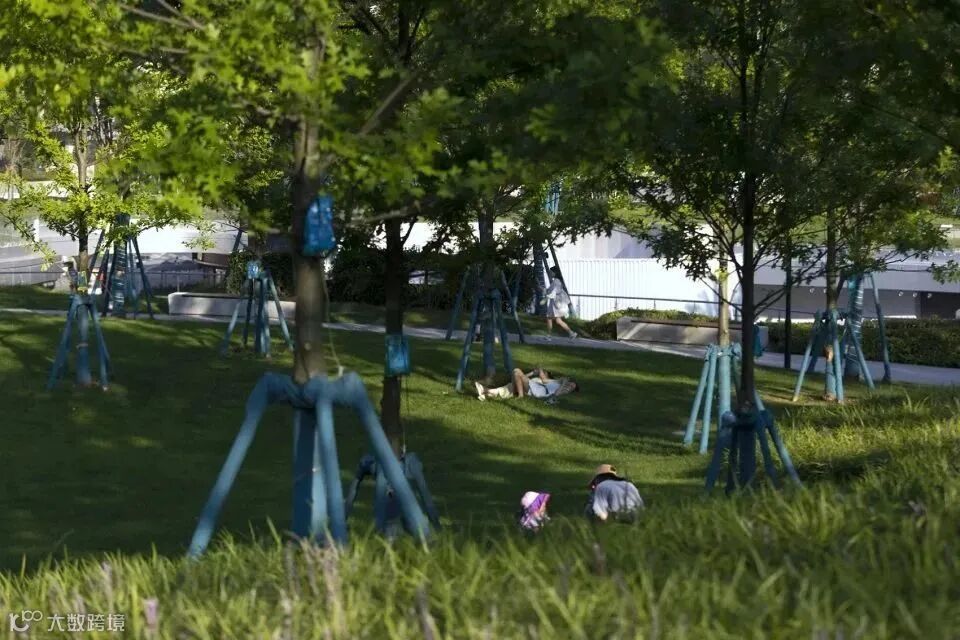▲绿植、开阔的草地、坡地、连桥等景观要素 © 日野摄影