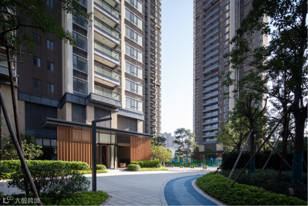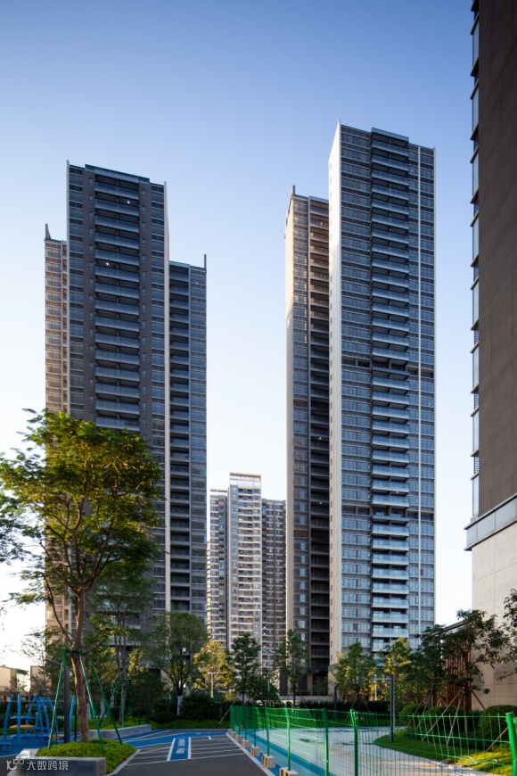 住宅部分充分体现了基于TOD圈层开发策略下的智造人文社区属性,通过风雨连廊便捷联通地铁站、商场、商街等各区域。小区内的景观疏密有致,打造愉悦舒适的归家流线及活动空间。