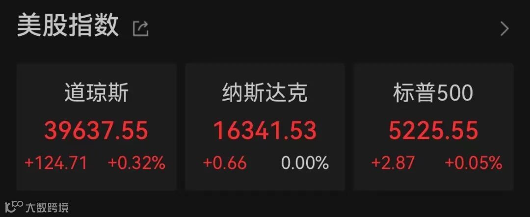 美国三大股指周一开盘上涨。Wind数据显示,截至北京时间21:48,标普500指数上涨0.05%,纳斯达克综合指数上涨0.00%,道琼斯工业指数上涨0.32%。