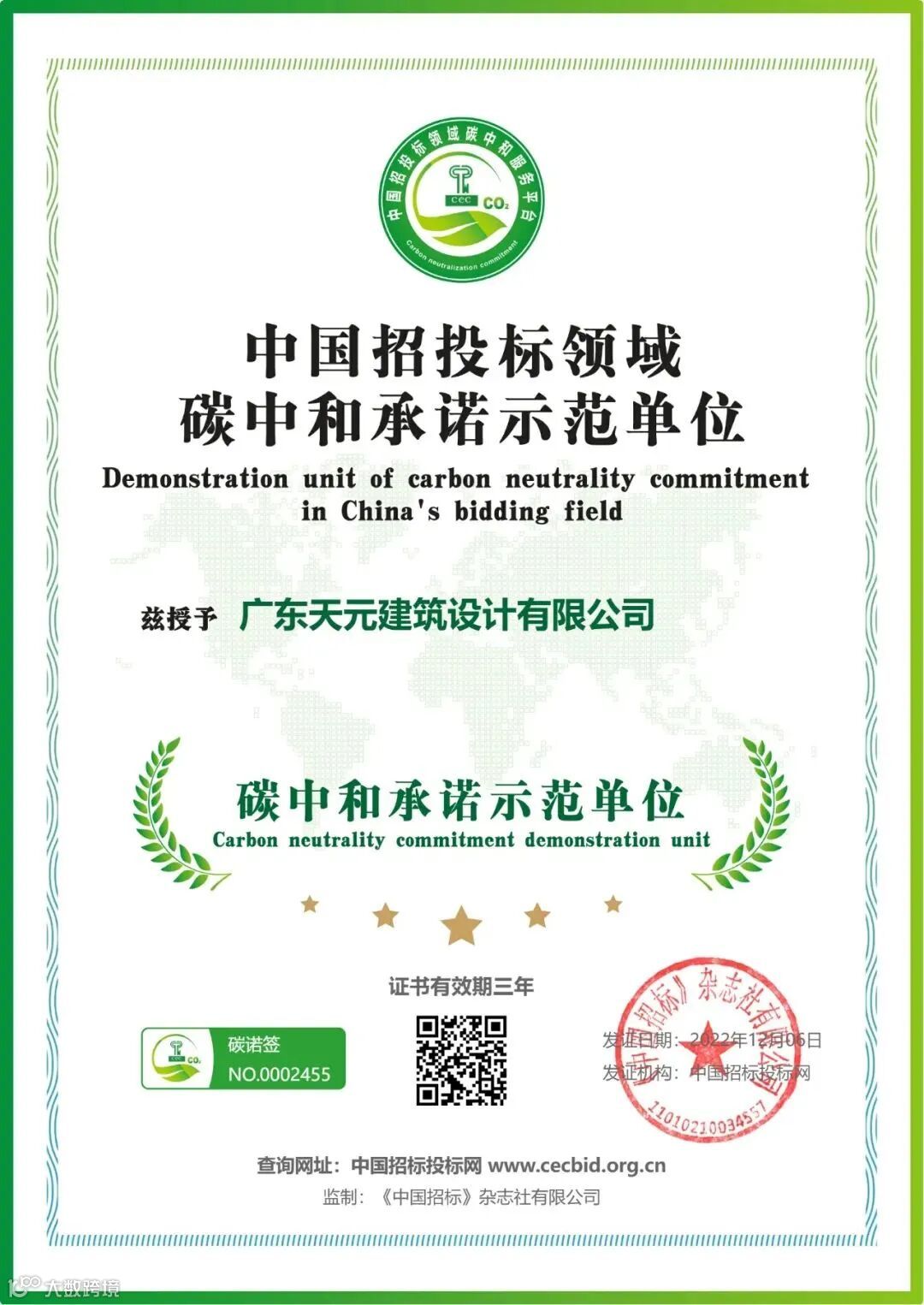 Demonstration unit of carbon neutrality commitment in China's bidding field