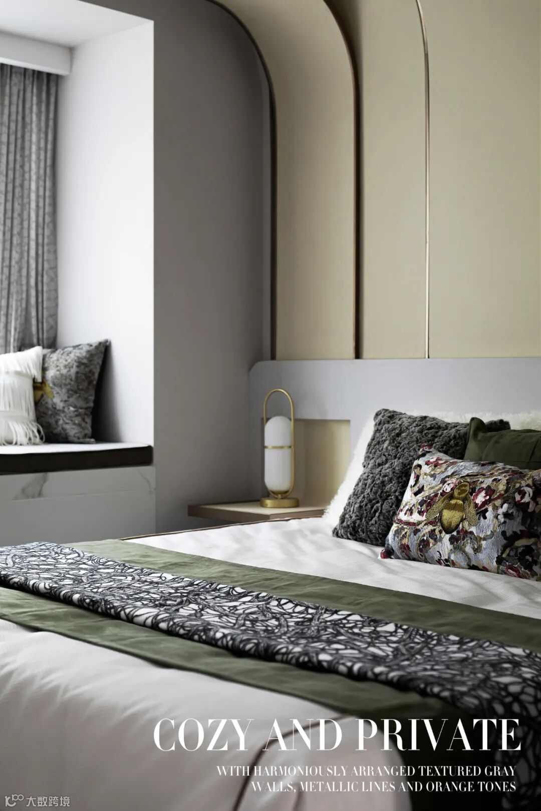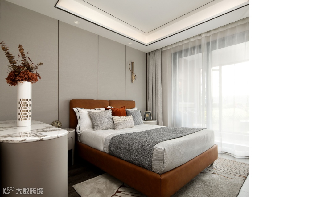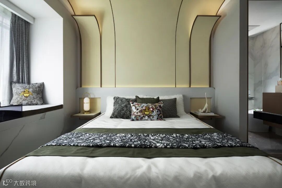 主卧延续主基调,精致而纯粹的细节设计。弧形背景墙增添趣味性,搭建一个无限包容的舒适空间,精致的饰品呼应文艺复兴这一主题。