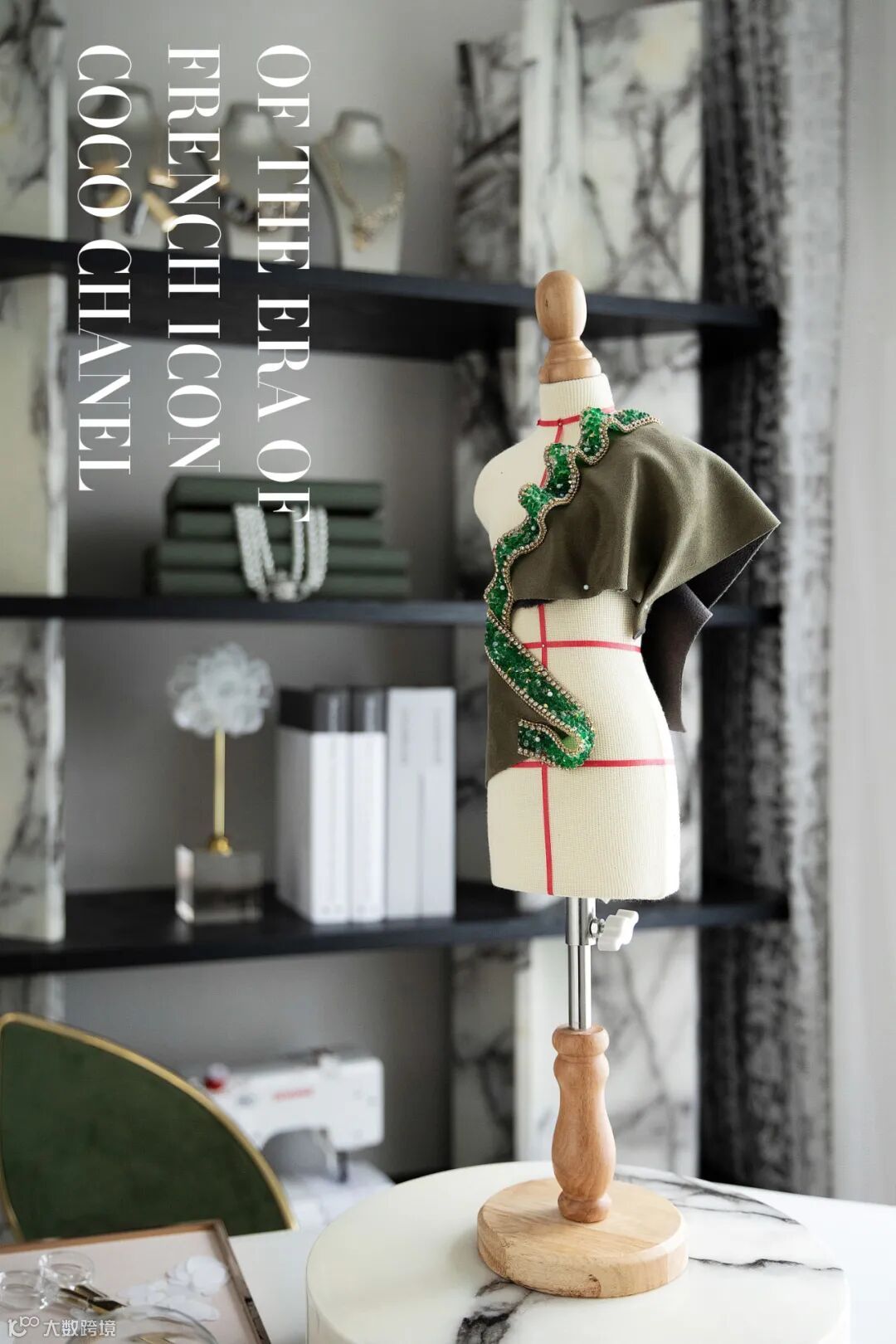 Urbane ornaments remind of the era of French icon Coco Chanel, stunningly decorating a practical workstation.