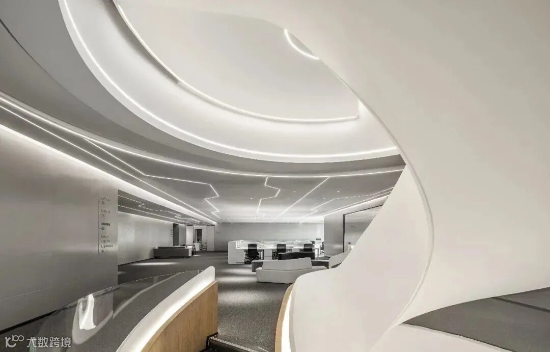 项目聚焦于互联网等高科技领域,设计面积约8300㎡。从赛意企业标识中汲取灵感并结合“空间蒙太奇”的手法,室内设计试图打破原有的传统平面布局,空间采用无墙体隔断形成多元路径,呈现开放自由流动式的平面。从而形成“空间蒙太奇”的新体验,通过流动空间有序和无序的多元体验,创造无限的未来空间可能性。提取互联网设计元素,通过数据球的切割形式演变成强烈的几何构成感,塑造不同的空间使用功能场景。