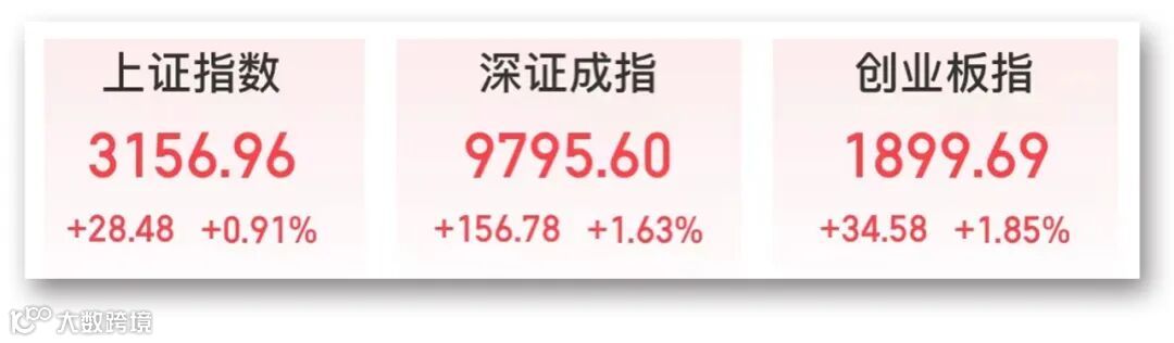 截至上午收盘,上证指数上涨0.91%,深证成指上涨1.63%,创业板指上涨1.85%。