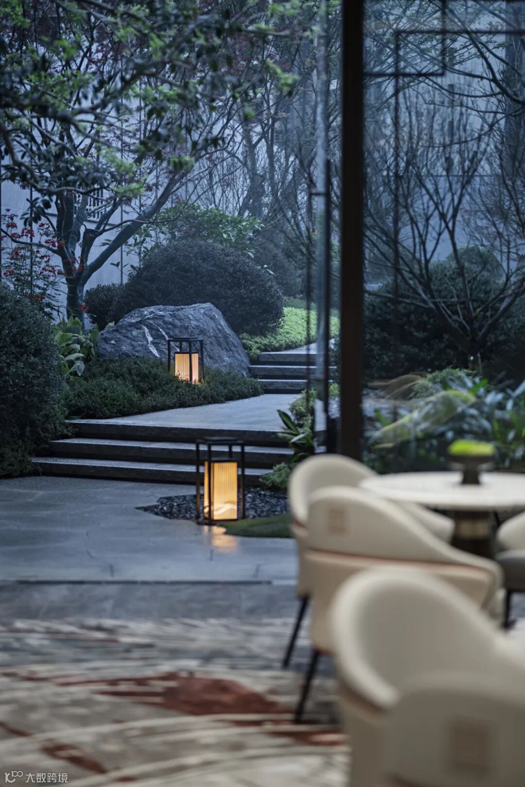 Through the floor-to-ceiling pattered window, the Zen-featured Suzhou traditional garden landscape can be accessed from indoors, maximizing the visual shock brought by the Chinese courtyards from interior to exterior.