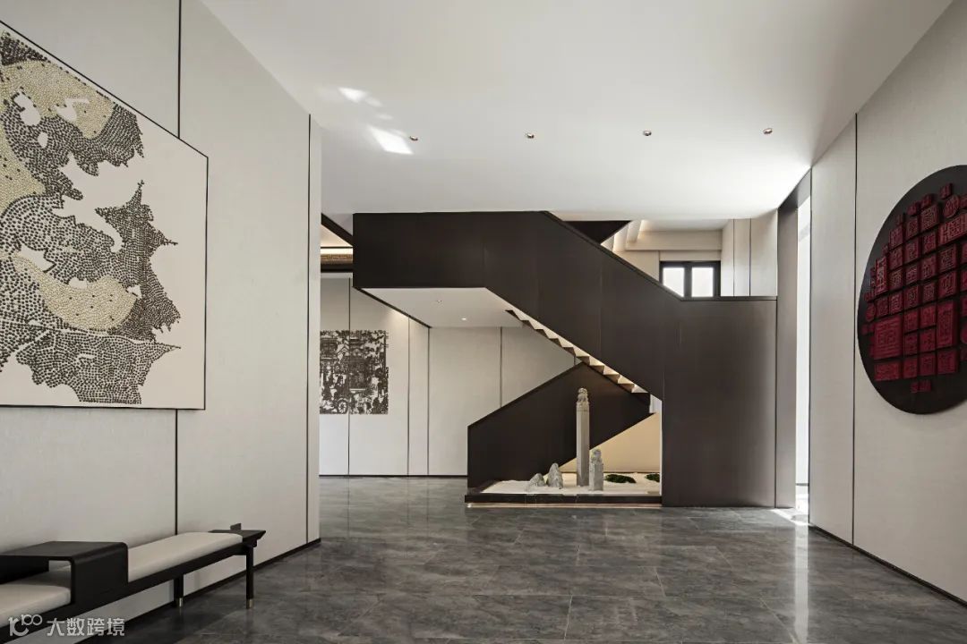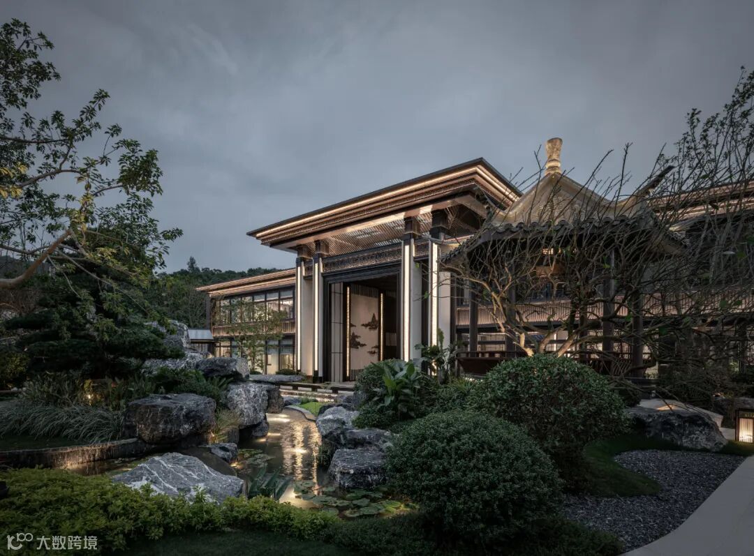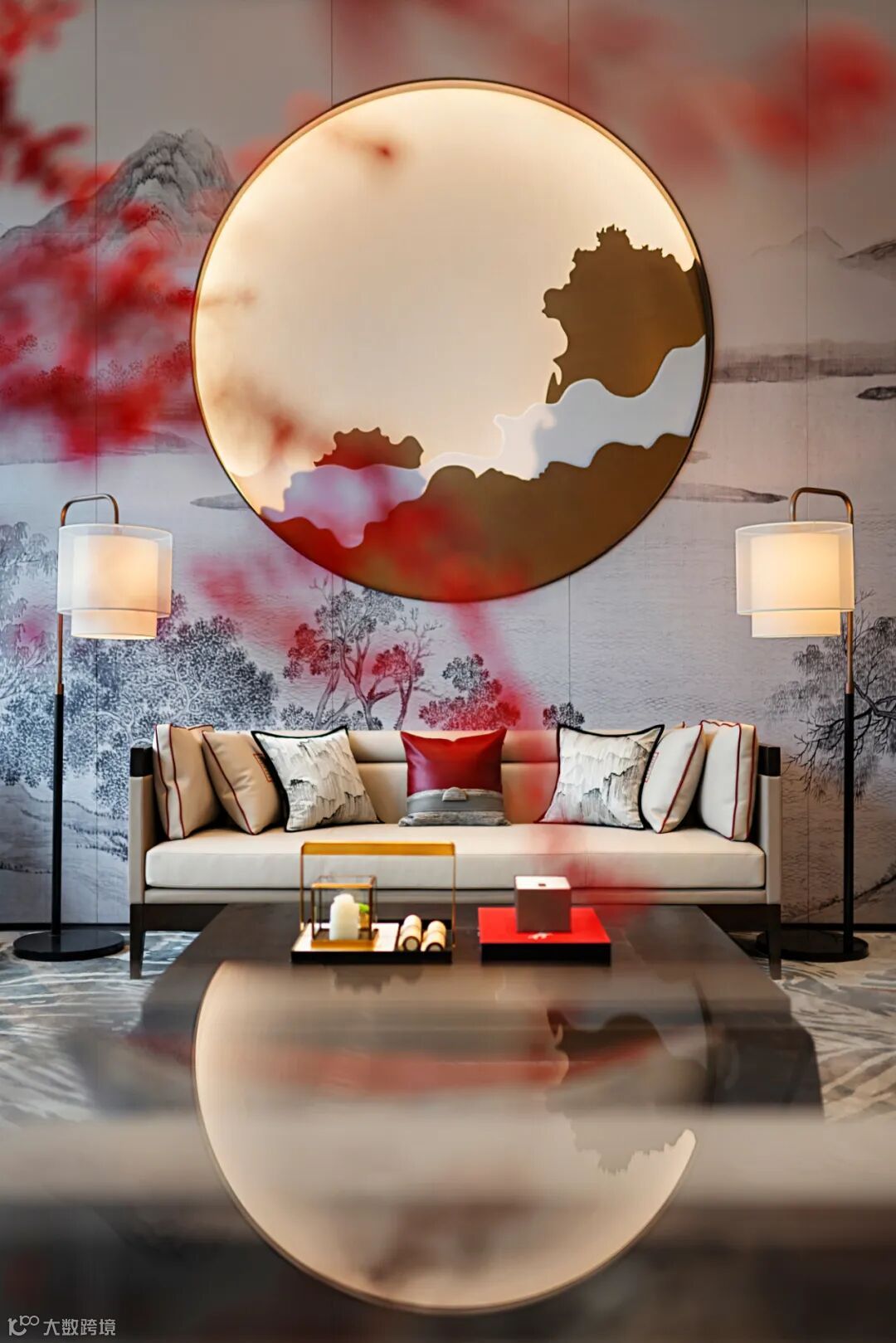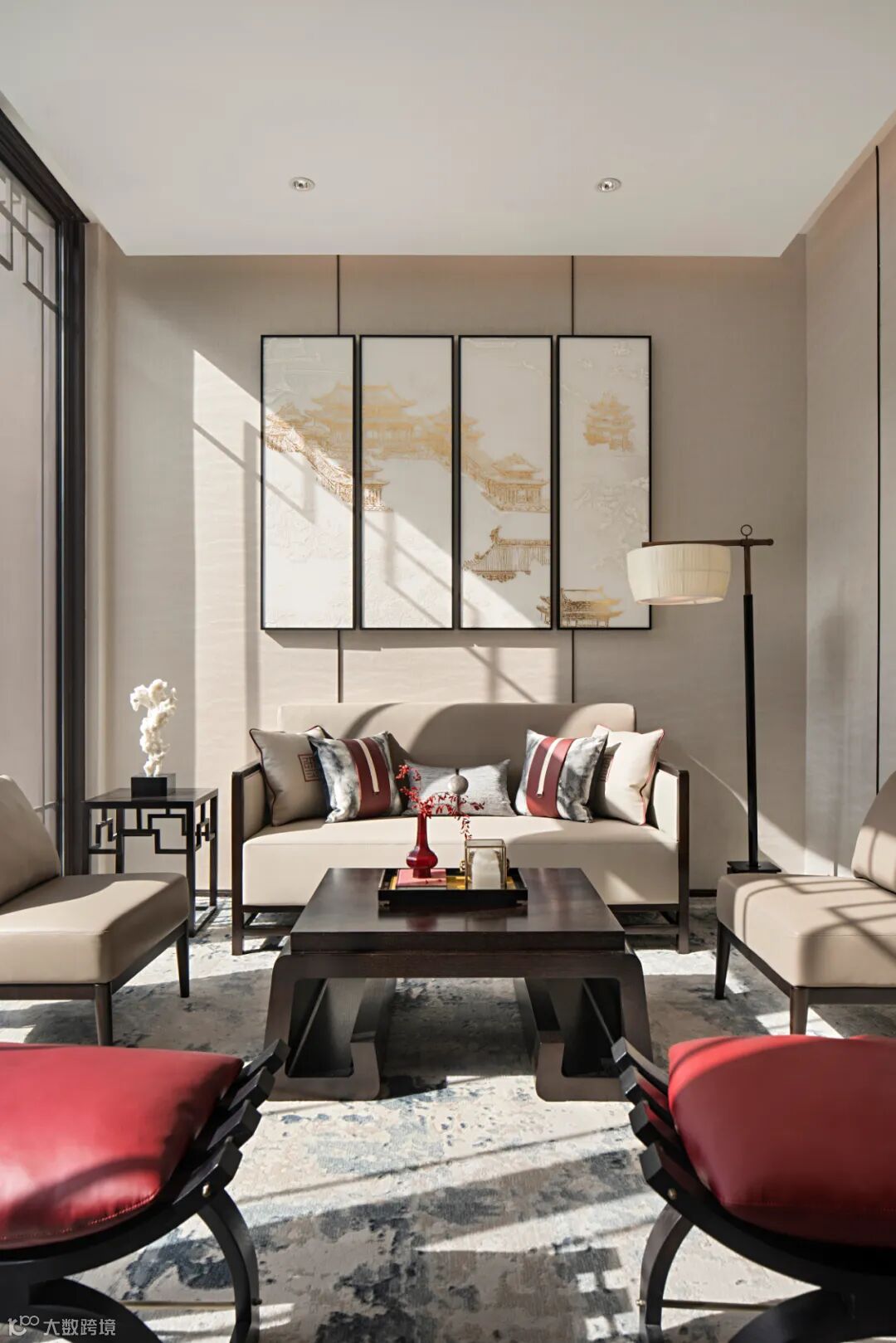 禅意十足的苏州园林,通过大面积的落地花窗无缝引入到室内,最大限度的营造中式庭院大宅由内到外的视觉冲击。