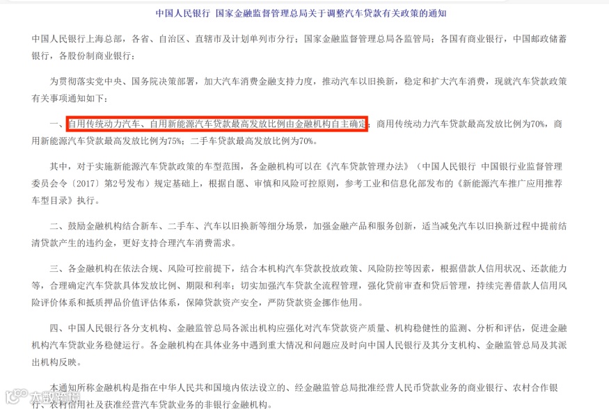 根据此前规定,自用传统动力汽车、自用新能源汽车贷款最高发放比例分别为80%、85%。业内人士表示,“车贷新规”的实施降低了消费者购车门槛,让消费者能够享受到真正意义上的“0首付”。