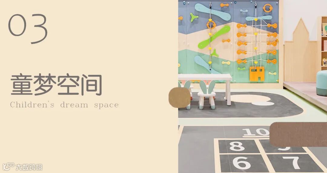 这不是一个简单的儿童游乐场,是一个综合性的儿童智趣空间,包括书画、阅读、绘画、亲子互动等功能,是社区里的儿童早教中心。