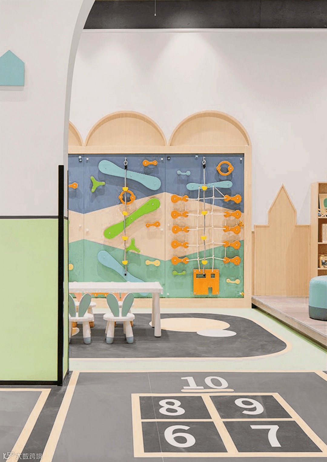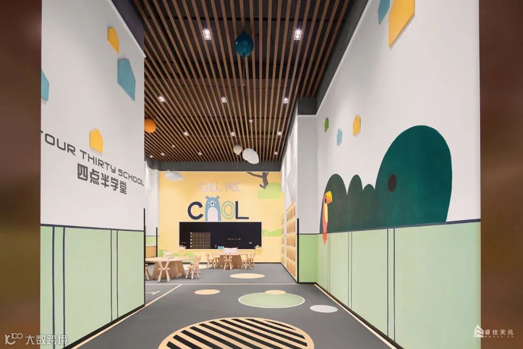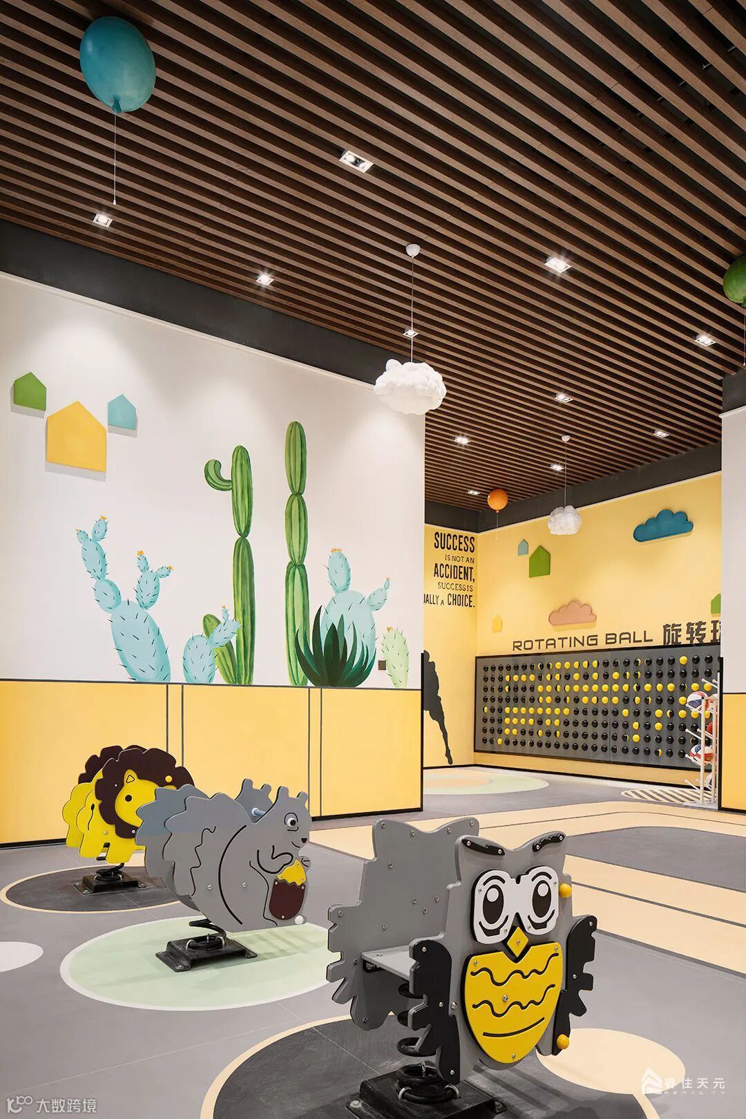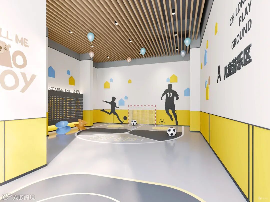 局部沙池造景让通透的空间更添趣味性,大幅的卡通墙绘和明亮的色彩灯光引人入胜,开启儿童娱乐的梦想之旅。