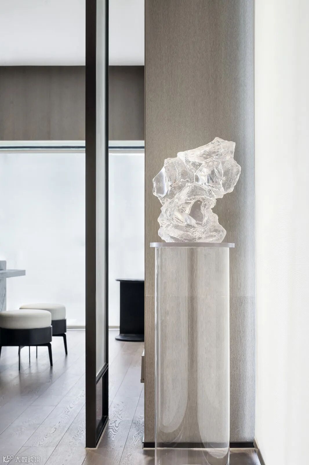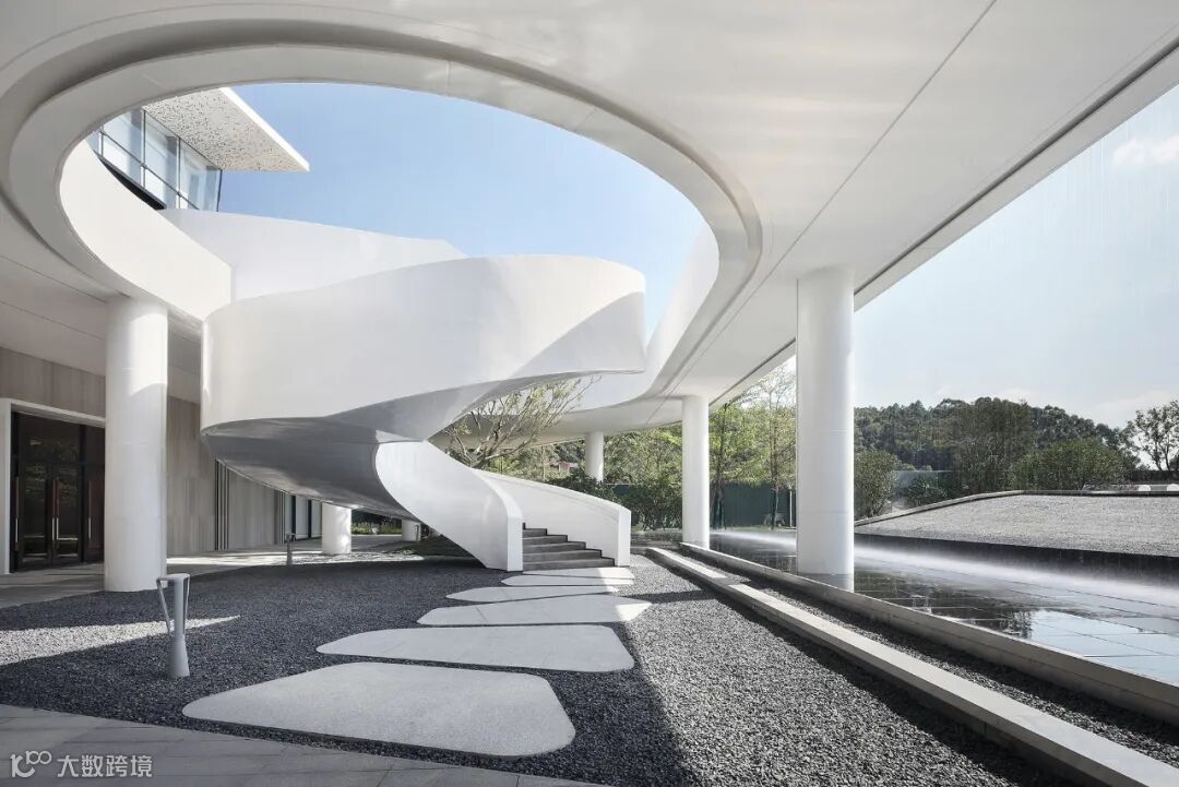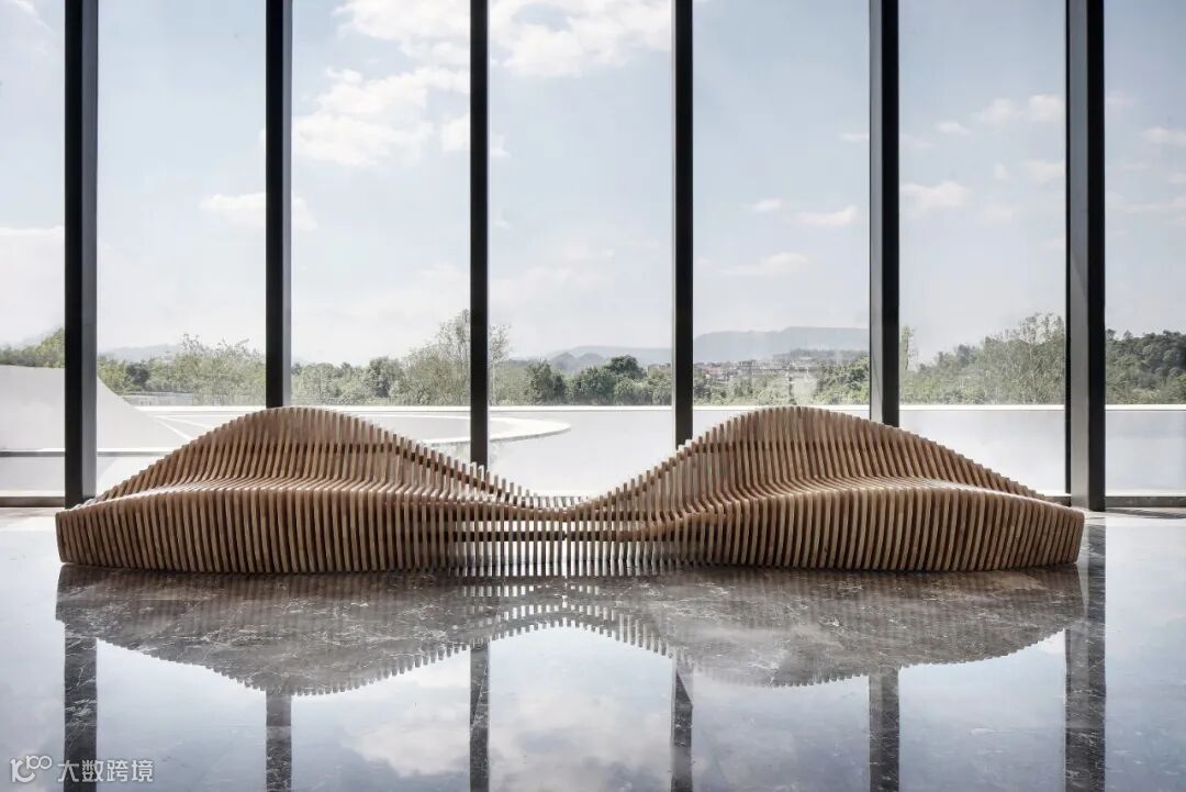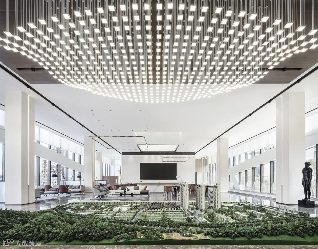 以大面积落地窗围合而成的二层空间,给观者高阔大气、豁然开朗的视觉享受。室外景观穿透玻璃融入室内,以人眼为媒介,重构空间,营造出丰满、生动的空间动态。
