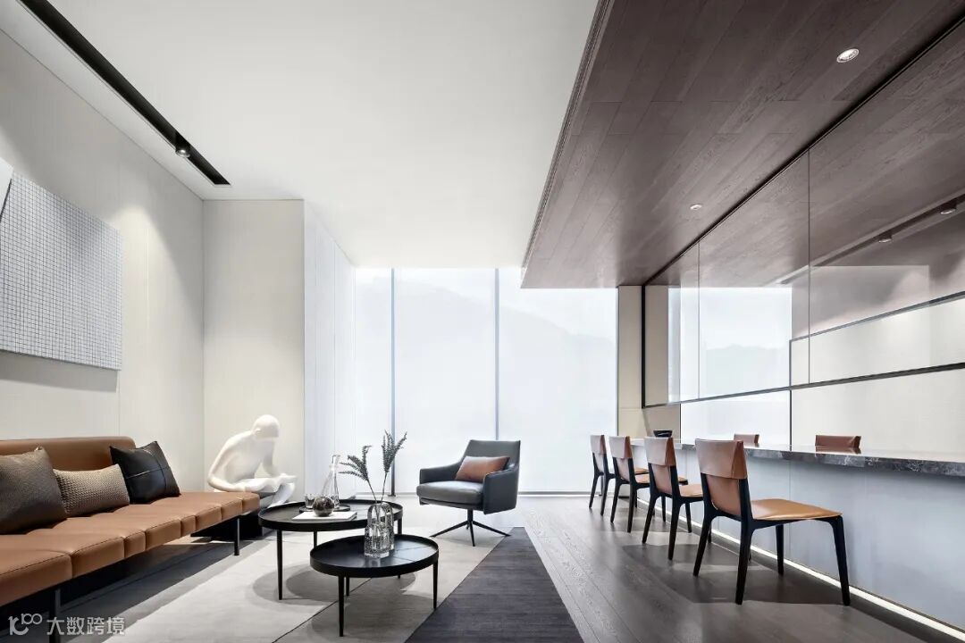 "less is more" is quoted by the famous architect Ludwig Mies vander Rohe in the 1930s. This is a design concept that encourage simplicity and opposes over-decoration. Simple things often bring more enjoyment to people and give people a sense of calm. In the space, the organization and overlap of lines, materials and volumes are used to present the design concept of "less is more", creating an overall minimalist and modern design framework. The space creates a simple, transparent, delicate impression to the masses.