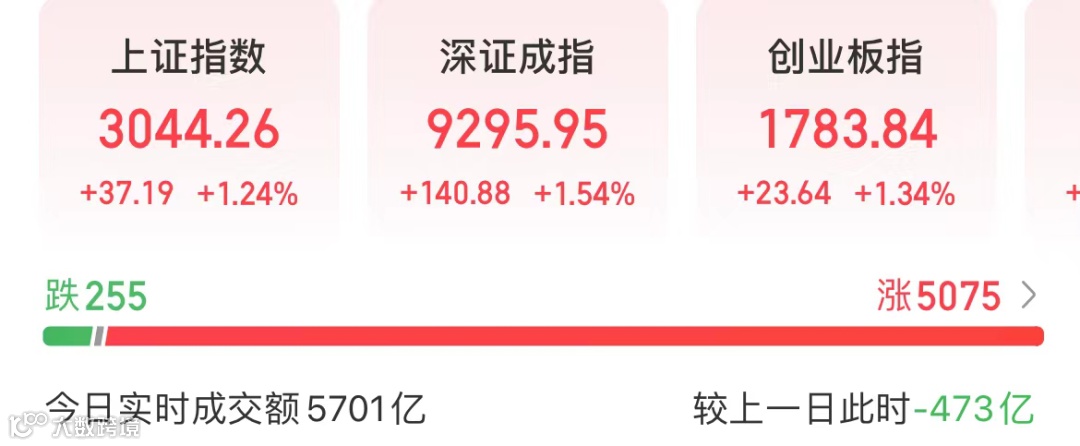 截至上午收盘,沪深两市逾5000只个股上涨,其中,逾580只个股涨幅达到或超过9%