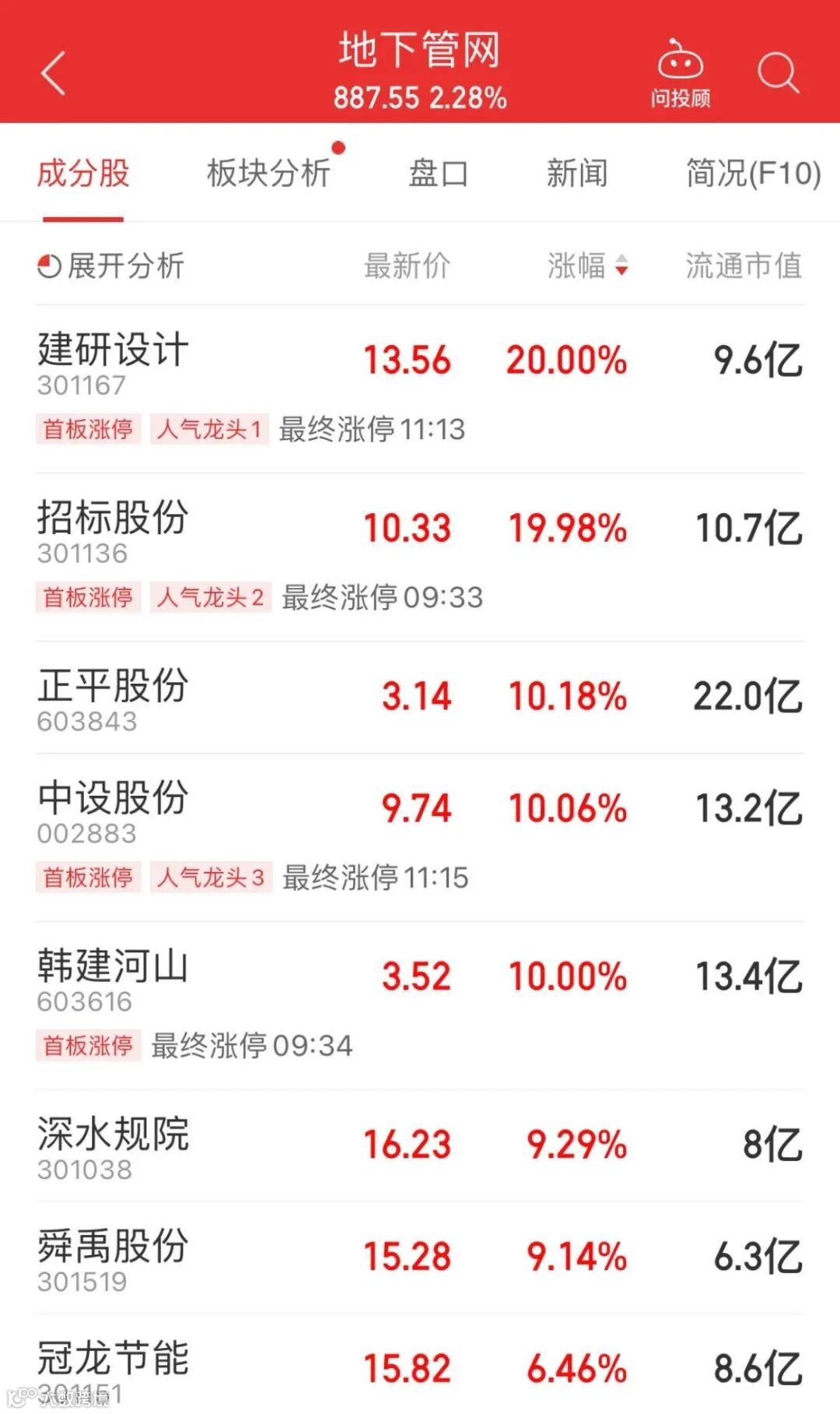 地下管网概念股盘中拉升,建研设计、招标股份、中设股份、韩建河山涨停。