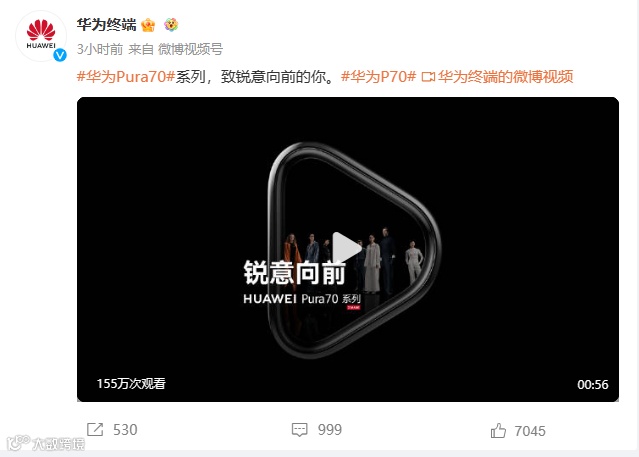 华为终端还发布一则华为Pura70系列(以下简称P70系列)视频。
