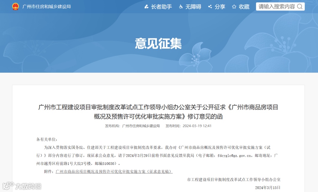 为深入贯彻落实国务院、住建部关于工程建设项目审批制度改革要求,广州市工程建设项目审批制度改革试点工作领导小组办公室对《广州市商品房概况及预售许可优化审批实施方案(试行)》部分内容进行了修订,并公开征求意见。